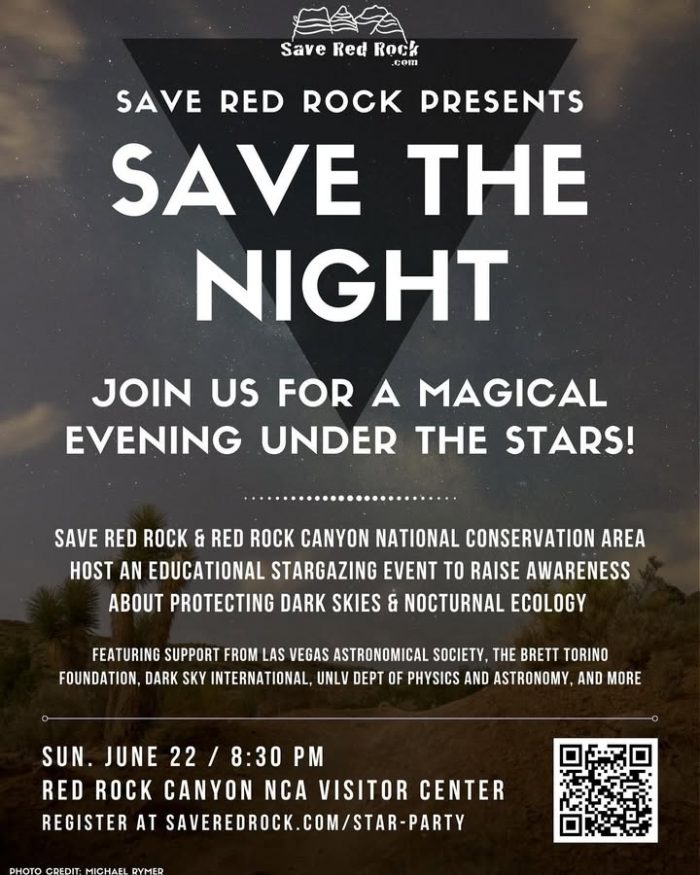 ✅ Red Rock Canyon NCA and Save Red Rock launched a series of Star Parties, and are on track to achieve an Urban Night Sky Place designation for Red Rock Canyon by Dark Sky International.